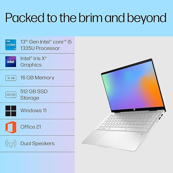 - Processor – Intel Core i5-1335U (up to 4.6 GHz with Intel Turbo Boost Technology(2g), 12 MB L3 cache, 10 cores, 12 threads) ; Memory – 16 GB DDR4-3200 MHz RAM (onboard) ; Storage – 512 GB PCIe NVMe M.2 SSD